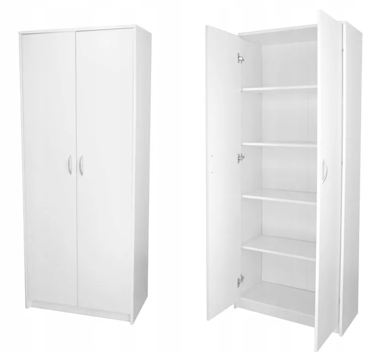 Biała minimalistyczna szafa dwudrzwiowa z półkami Exorta