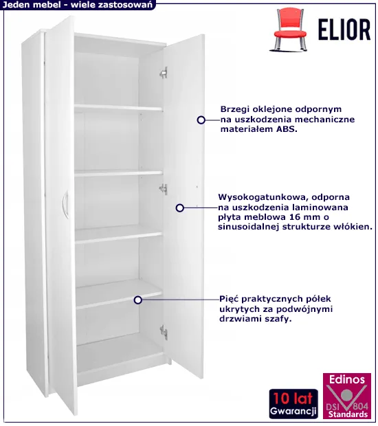 Szafa Exorta marki Edinos Premium to mebel, którego po prostu potrzebujesz. Przechowuj w niej ubrania, książki, dokumenty i wiele innych, ważnych dla Ciebie rzeczy. Pierwsza seria szaf Exorta dostępna jest w promocyjnej cenie - 598 zł! To Twój czas, więc złóż zamówienie na ten wyjątkowy regał już dziś!