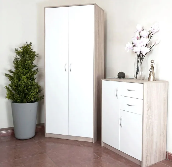 Poniżej przedstawiamy Ci wizualizację z wykorzystaniem szafy w kolorze dąb sonoma+biały: