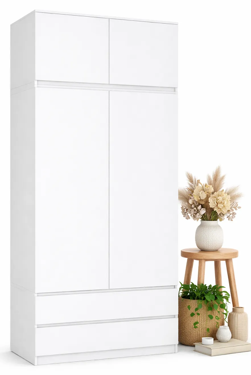 Biała dwudrzwiowa szafa z nadstawką Texan