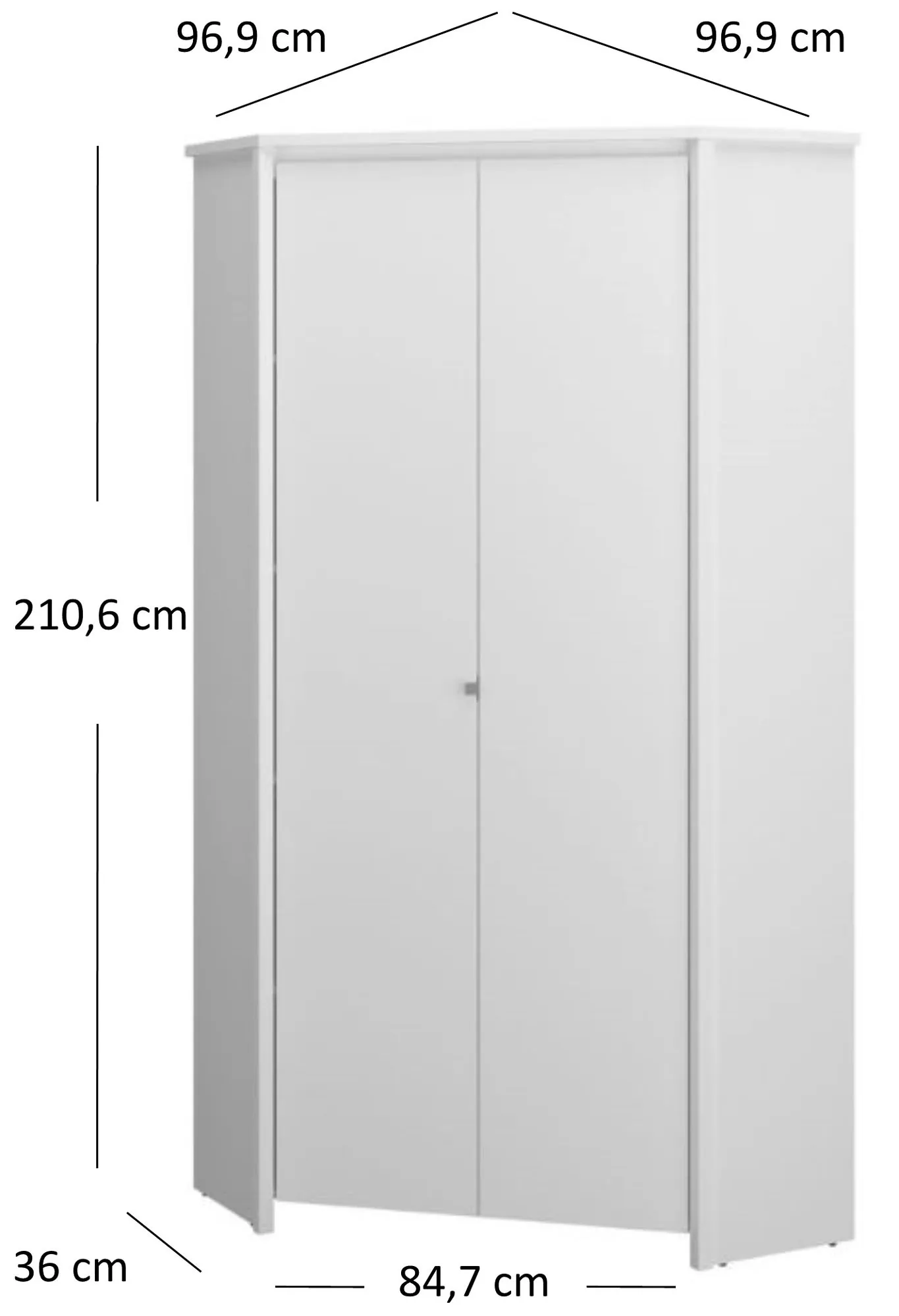 • Szerokość: 96,9 cm, wysokość: 210,6 cm, głębokość 96,9 cm.