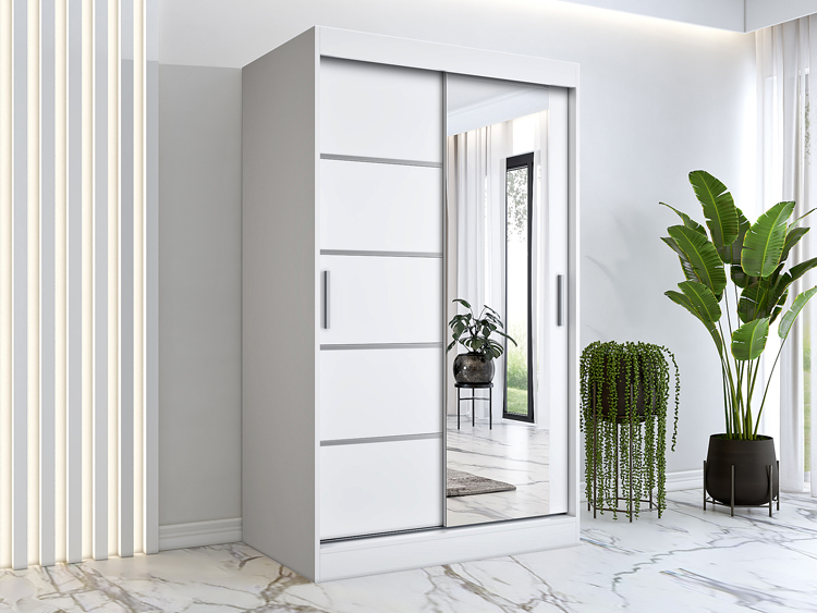 3. Myśl jak designer. Jak najłatwiej osiągnąć efekt świeżego, jasnego, komfortowego wnętrza? To proste! Schowaj wszystkie ubrania i akcesoria w pomysłowej szafie z lustrem i przesuwnymi drzwiami! Na przykład w przesuwnej szafie Lorenza 120 3X marki Edinos Premium.