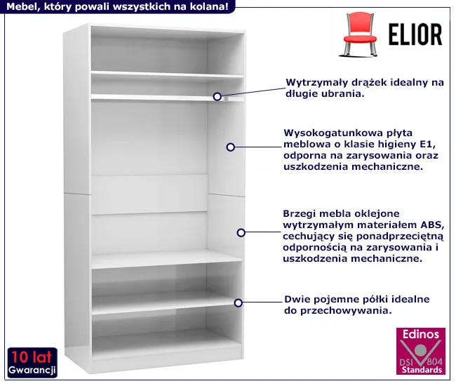 Dotyczy: Biała szafa z drążkiem bez drzwiczek - Bianco