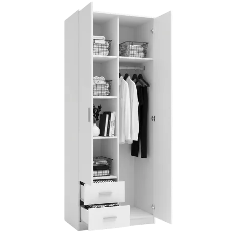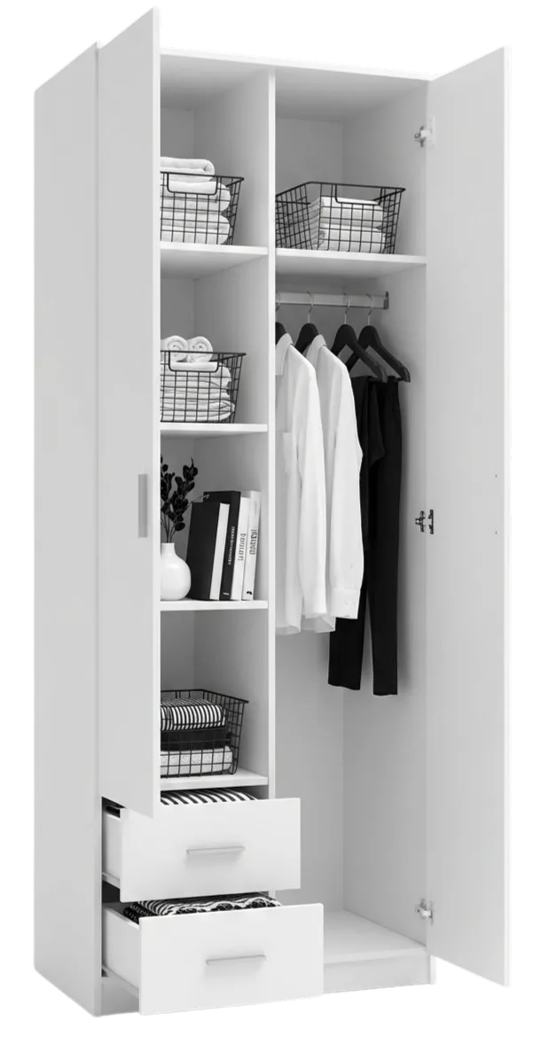 Biała szafa z drązkiem i półkami - Jonfo