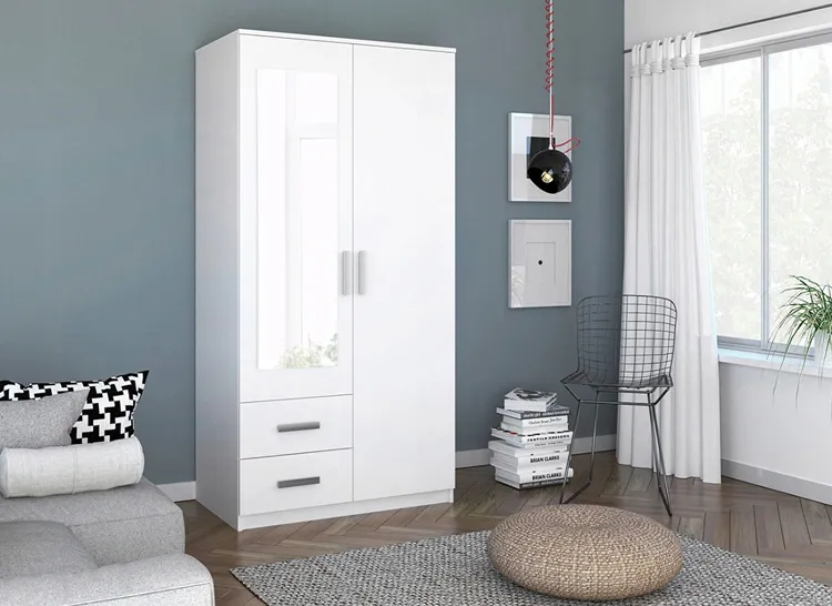 Biała szafa z lustrem Besari 2S