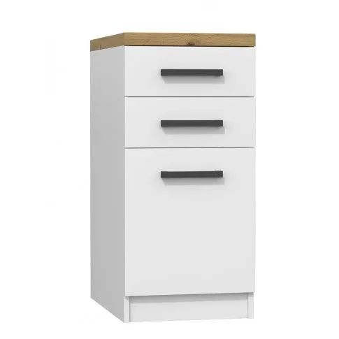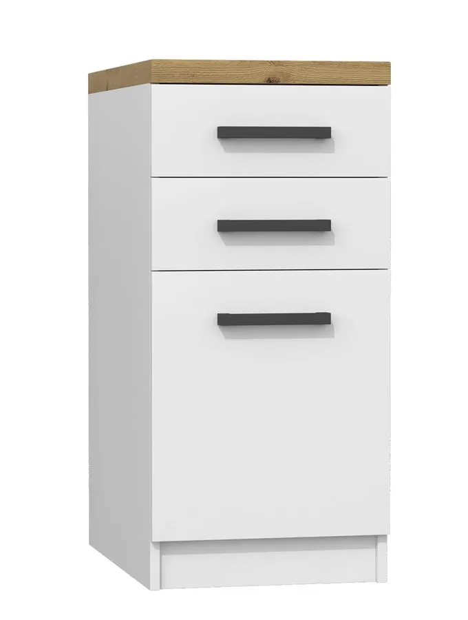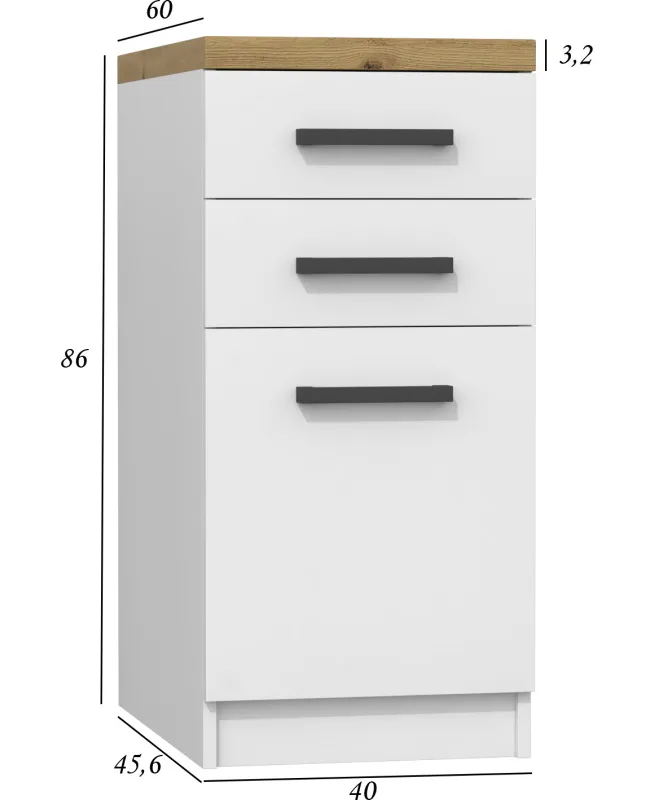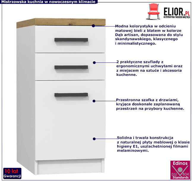 Dotyczy: Zestaw białych mebli kuchennych z blatem dąb artisan - Igaris
