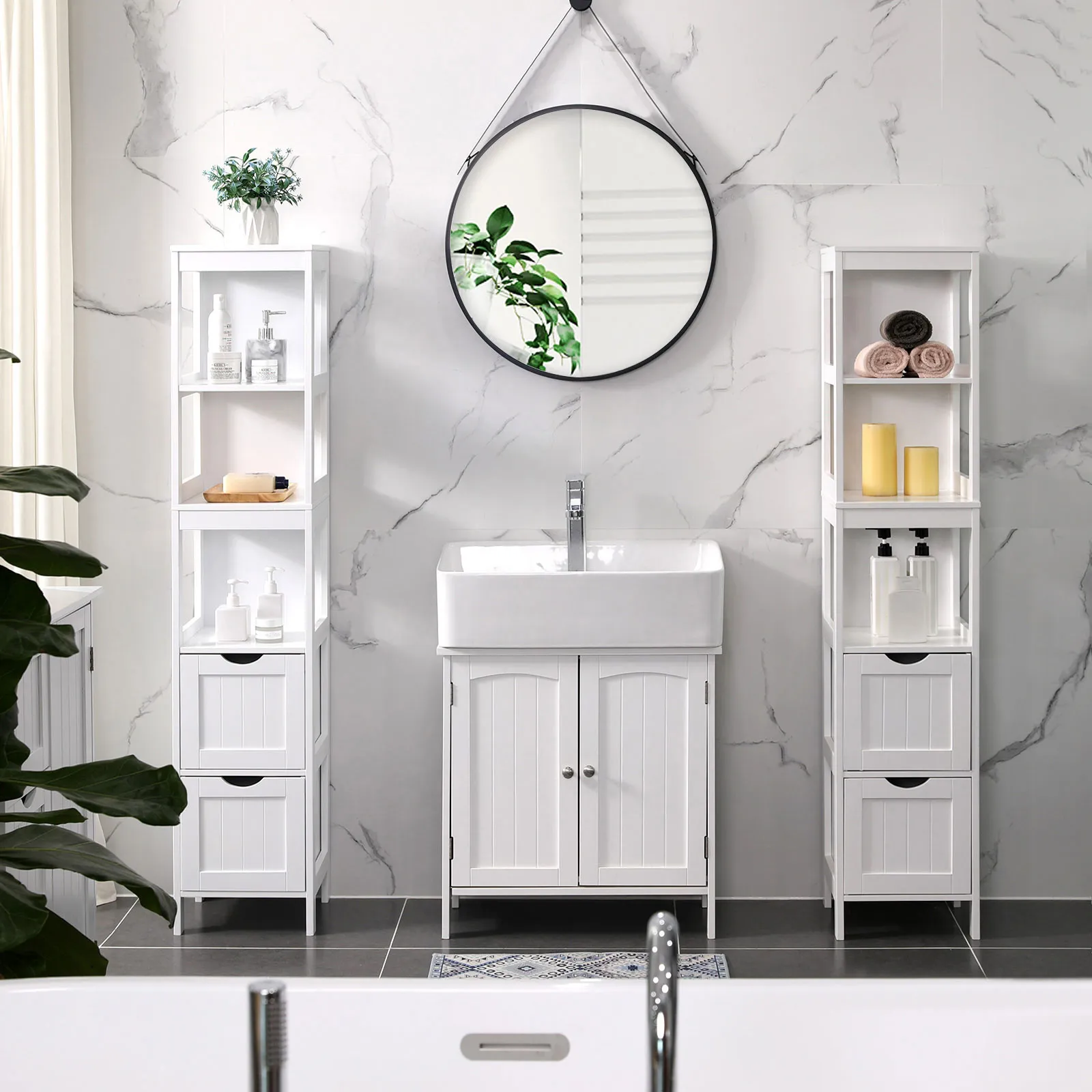 Fajna szafka, która pomogła uporządkować drobne kosmetyki i ręczniki. Mimo niewielkich rozmiarów ma zaskakująco dużo miejsca wewnątrz. Kolor pasuje do większości łazienek, a materiał sprawia wrażenie solidnego. Dostawa sprawna i bez opóźnień.
