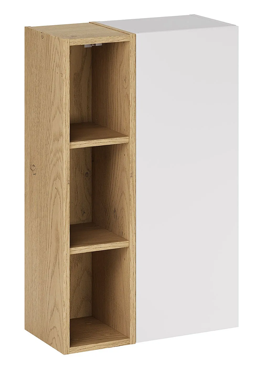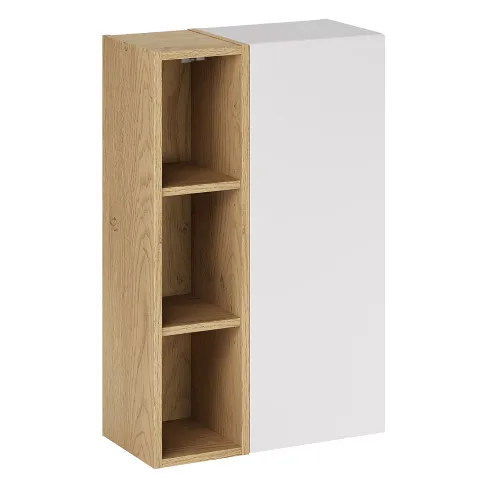 Wisząca szafka łazienkowa Verdessa 8X to funkcjonalny mebel zaprojektowany z myślą o codziennej wygodzie i estetycznym porządku w łazience. Prosta, zwarta bryła łączy zamkniętą część z gładkim frontem oraz otwarte półki w dekorze drewna, które umożliwiają szybki dostęp do najczęściej używanych kosmetyków i akcesoriów. Montaż na ścianie pozwala zachować wizualną lekkość aranżacji, a zestawienie matowego, białego frontu z naturalnym wybarwieniem drewna podkreśla spokojny, harmonijny charakter kolekcji Verdessa.