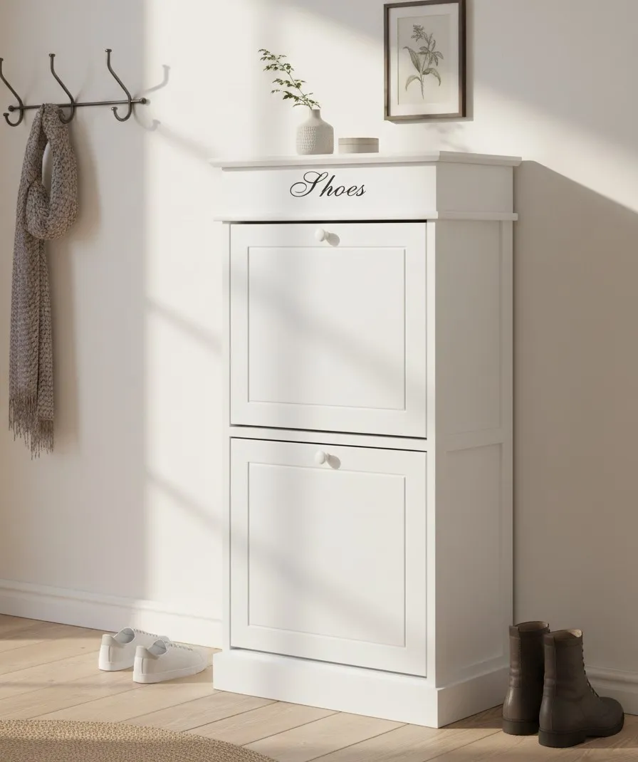 • Dwie duże, uchylne przegrody pozwalają pomieścić do 10 par butów, co jest szczególnie przydatne dla rodzin lub osób z większą kolekcją obuwia.