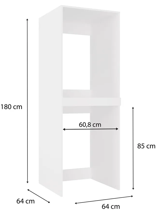 Wymiary całkowite: szerokość: 64 cm, głębokość: 64 cm, wysokość: 180 cm.