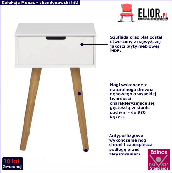 - Modna kolorystyka: biały. Kliknij w link i sprawdź także inne białe szafki nocne w sklepie Edinos.pl. Stwórz swój praktyczny zestaw mebli.