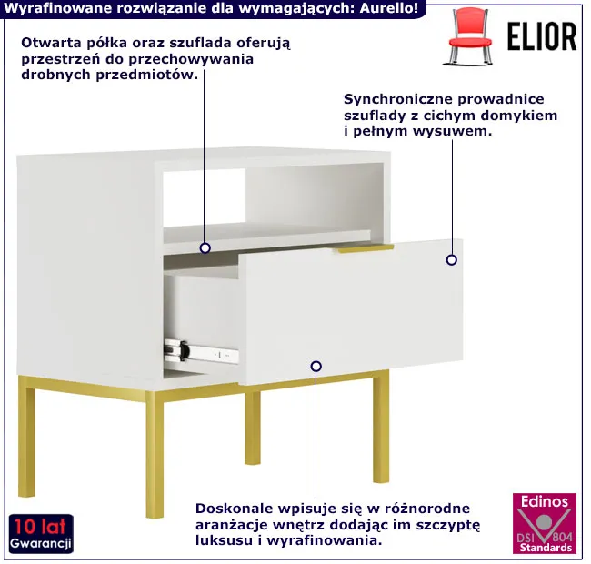Dotyczy: Biała szafka nocna z czarnym metalowym stelażem - Pascal 9X