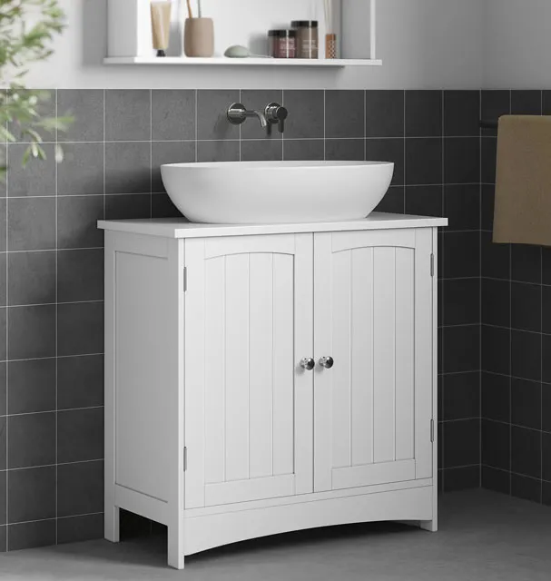 Biała szafka pod umywalkę nablatową w stylu skandynawskim - Extos
