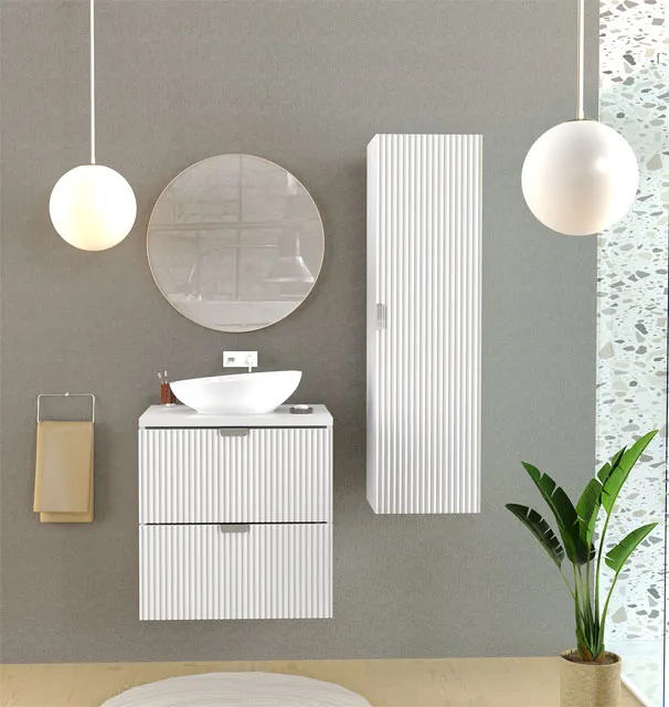 Dotyczy: Ryflowana szafka łazienkowa pod umywalkę biały + orzech - Enda 4X
