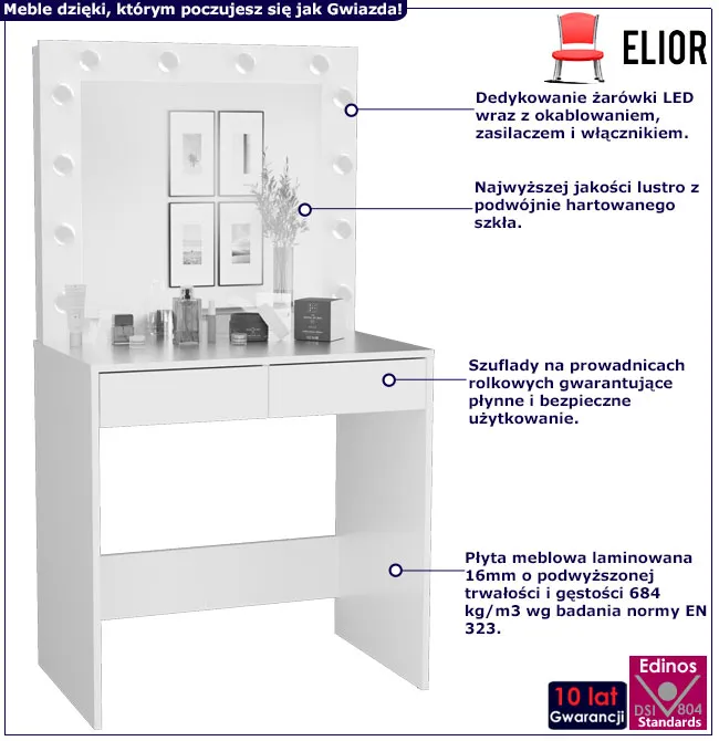 Dotyczy: Białe biurko toaletka z szufladami i lustrem scenicznym - Wenus 6X