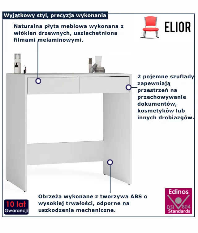 • dwie pojemne szuflady zapewniają przestrzeń na przechowywanie dokumentów, kosmetyków lub innych drobiazgów.