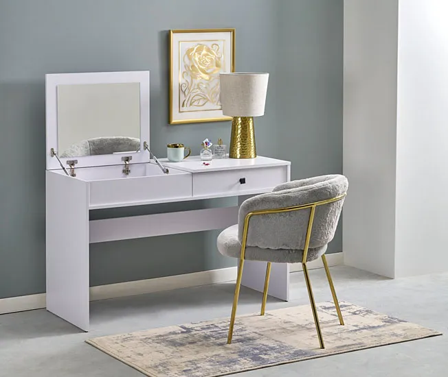 Biała toaletka z lustrem oraz szufladą - Lilou