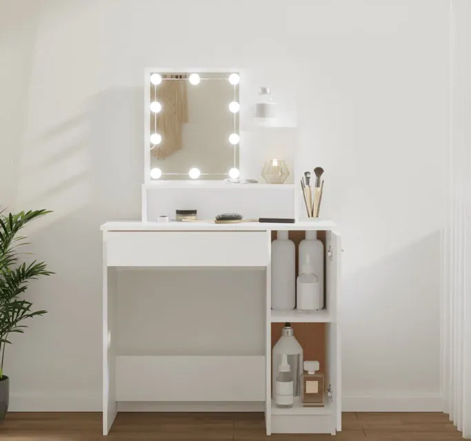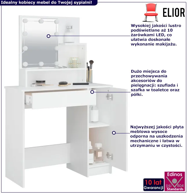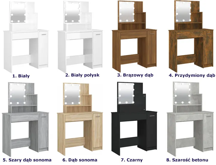 Dotyczy: Toaletka kosmetyczna z szafką i lustrem LED brązowy dąb - Haleb 4X