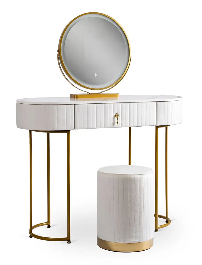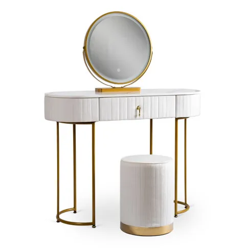 Dotyczy: Szara toaletka glamour z lustrem i welurową pufą - Erton 4X