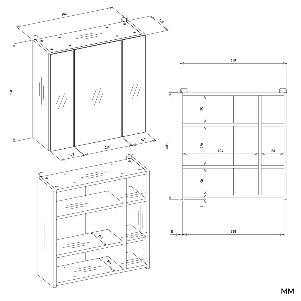 Biała trzydrzwiowa lustrzana szafka łazienkowa 60cm - Erosa 5X