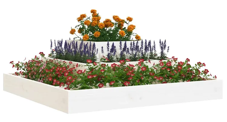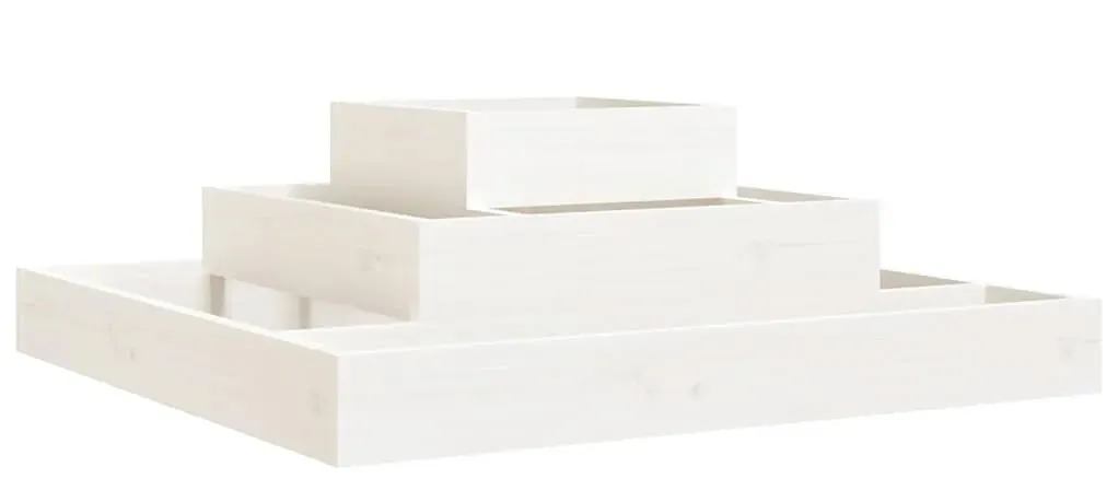 Biała trzypoziomowa drewniana donica ogrodowa - Edir