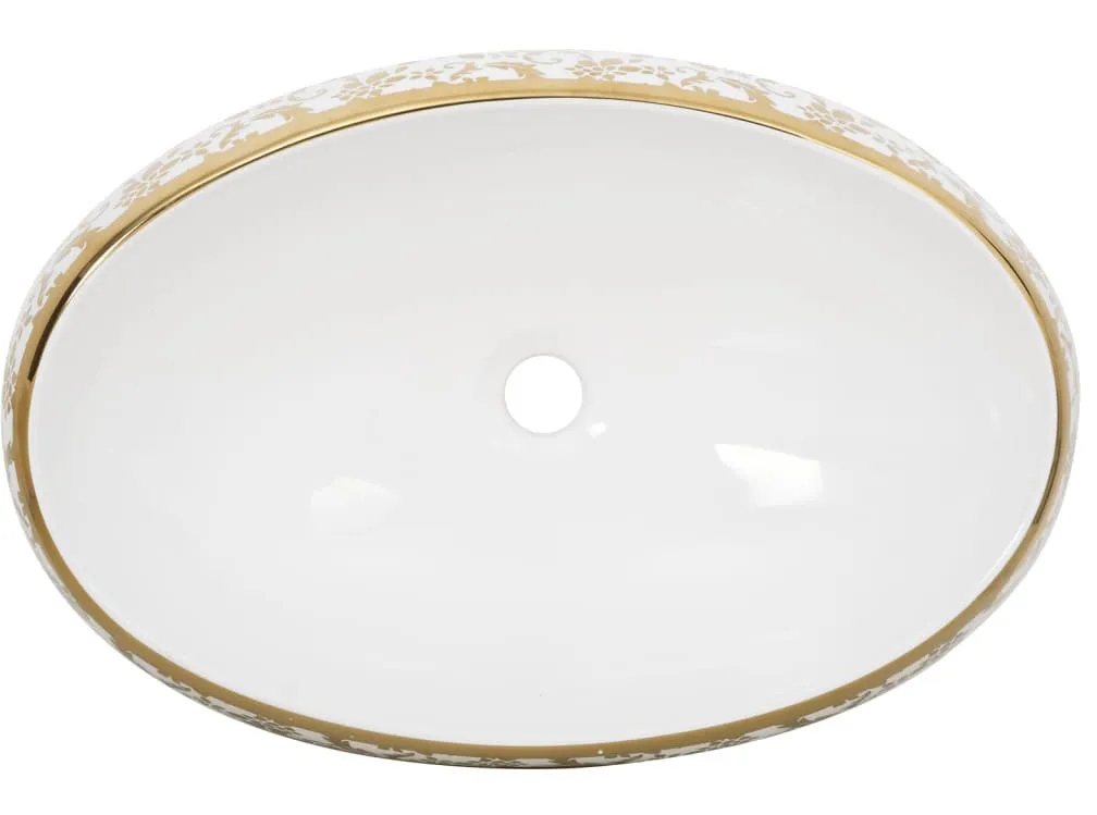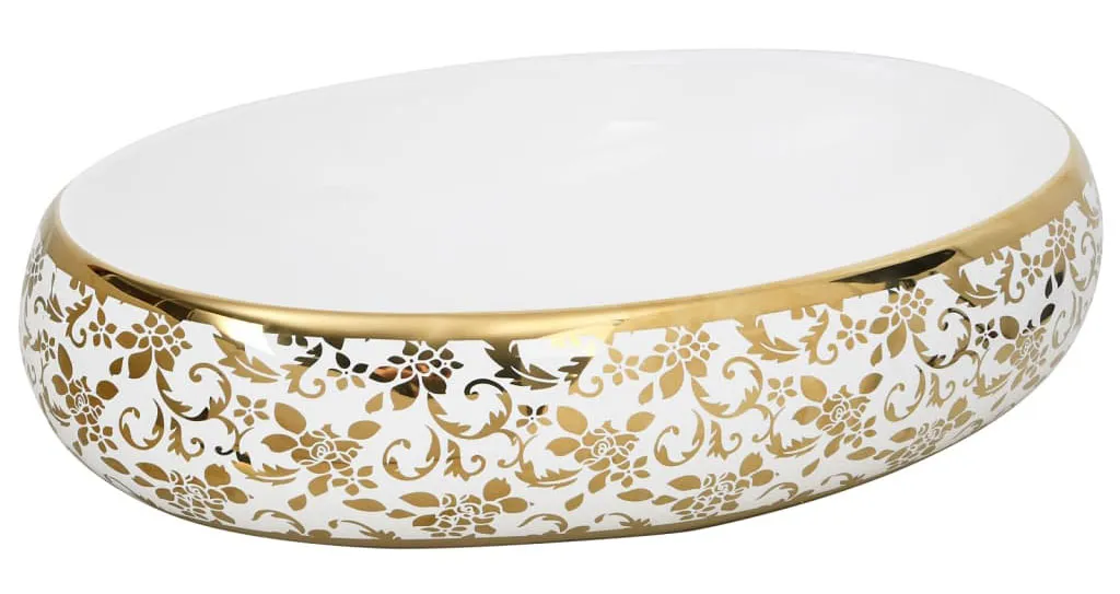 Biała umywalka nablatowa ze złotymi zdobieniami - Lefis