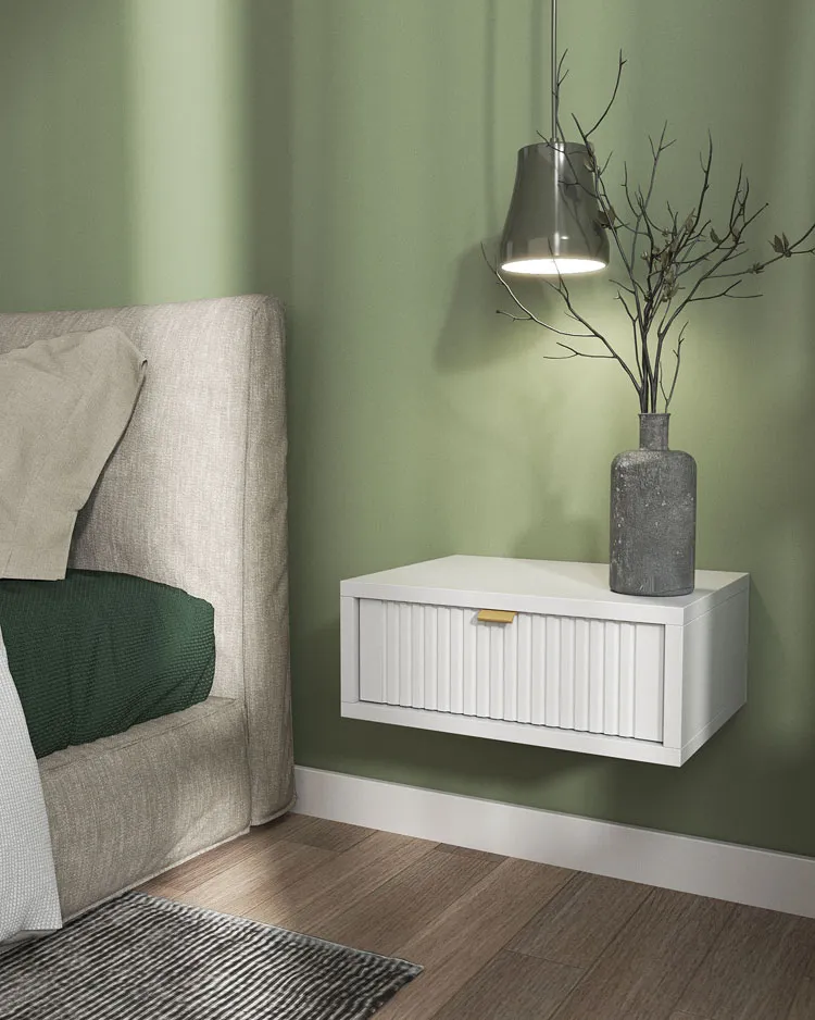 Biała wisząca szafka nocna z ryflowaną szufladą - Magnet