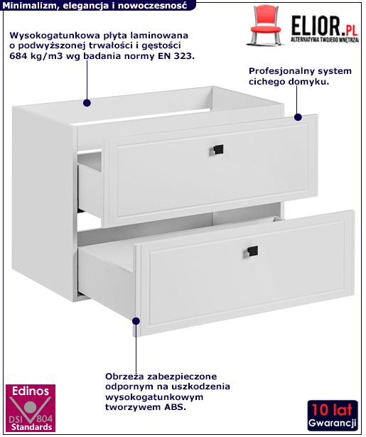 Dotyczy: Biała nowoczesna szafka pod umywalkę z szufladami - Vimi 3X 100 cm