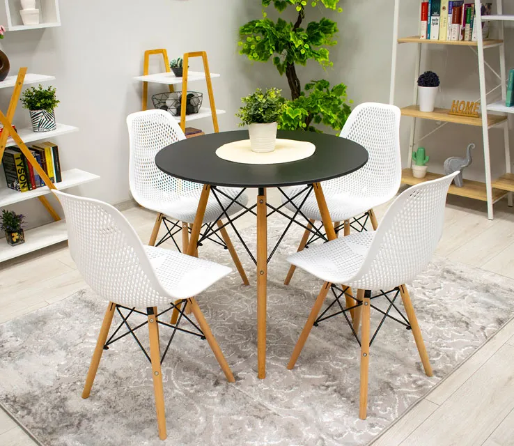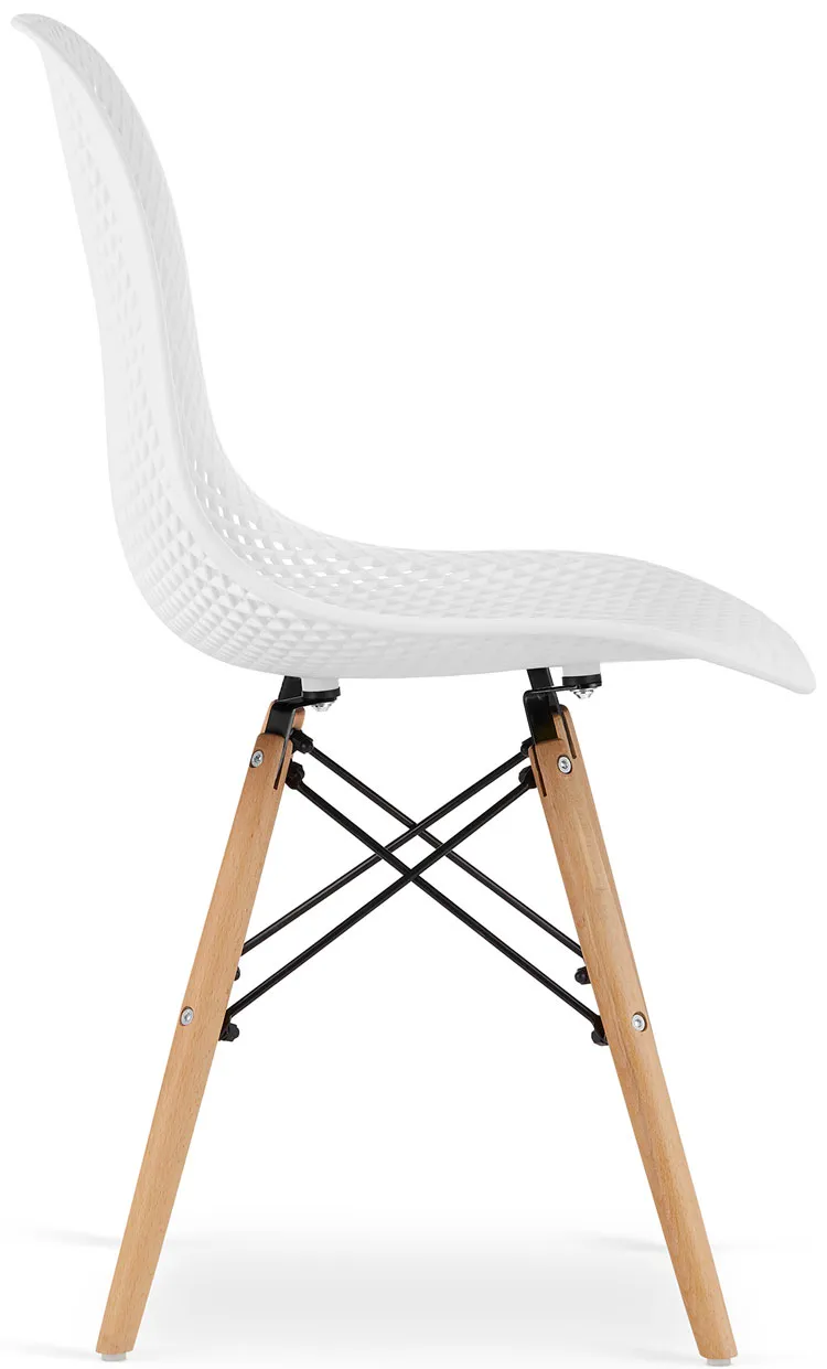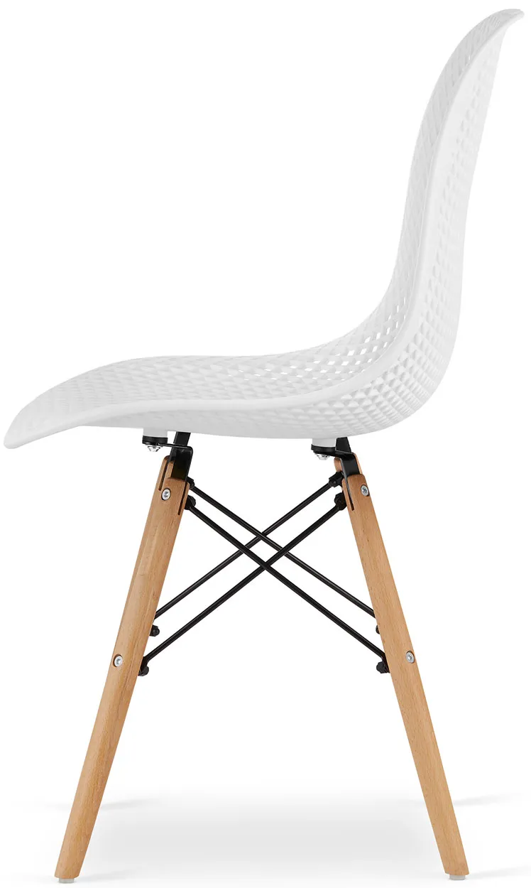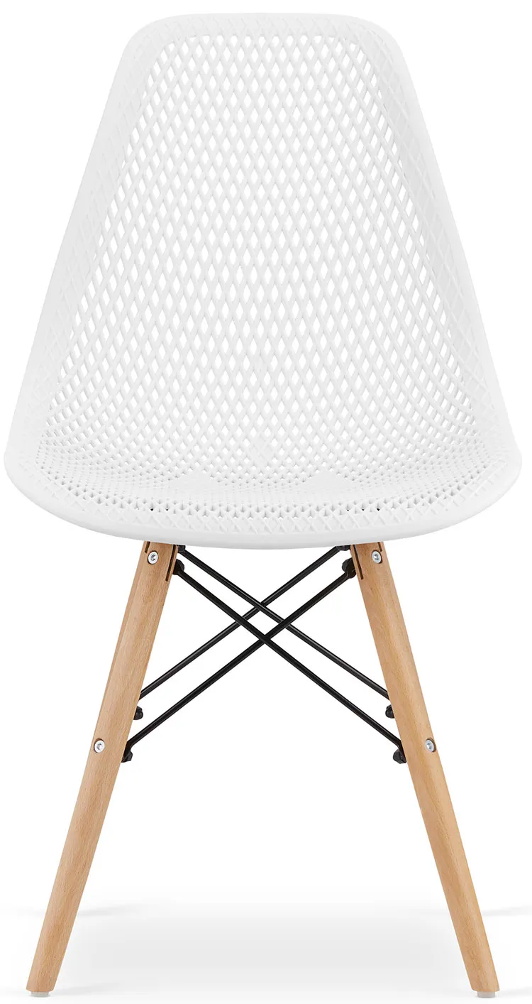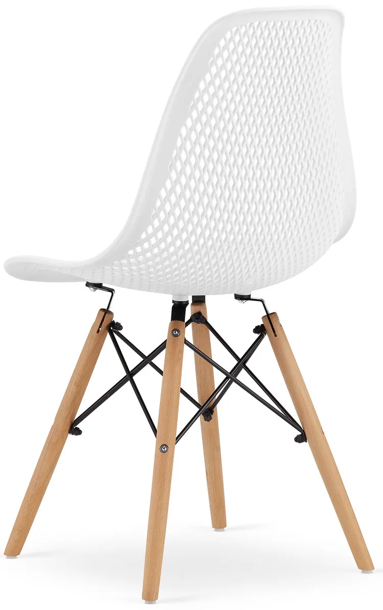 Z pewnością kojarzysz krzesła w stylu skandynawskim jest to: najczęściej jasne oparcie o specyficznym kształcie połączone z bukowymi nogami. To krzesło jednak niezwykle wyróżnia się na tle mebli w podobnym stylu. Przyczyniło się do tego zastosowanie ażurowego, niezwykle dekoracyjnego siedziska, które dodaje mu unikatowego charakteru. Niech Twoja jadalnia zachwyca stylem i będzie równie funkcjonalna dla dziadków, cioć czy przyjaciółek jak i dzieci. Gwarantuje to ergonomiczne siedzisko wykonane z łatwego w utrzymaniu w czystości bezpiecznego polipropylenu.