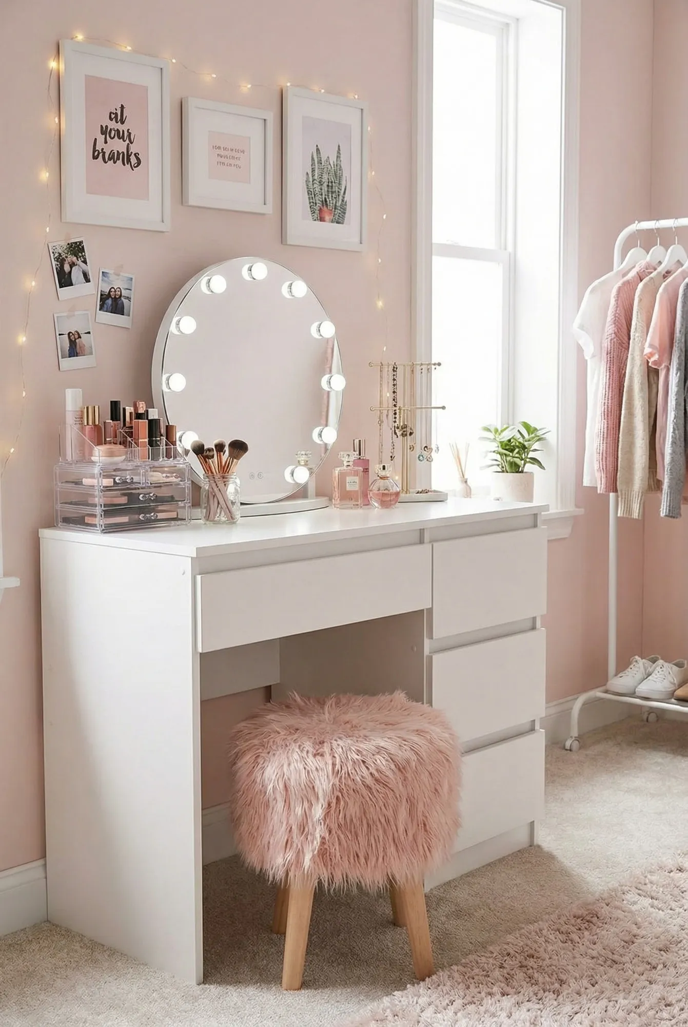 Aranżacja pokoju nastolatki z biurkiem do toaletki z szufladami Alvo 3X