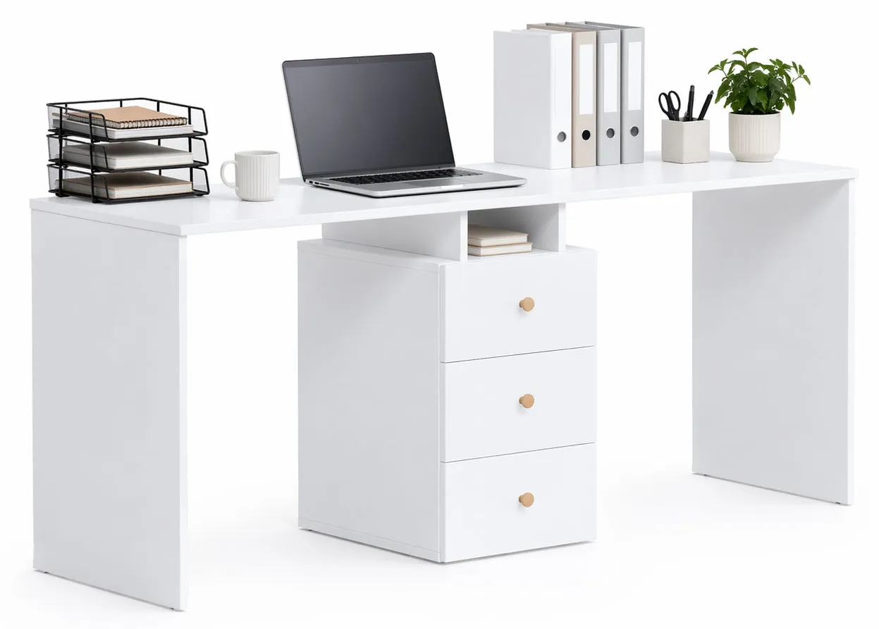 Białe biurko dwuosobowe z szufladami Tadoro 3X