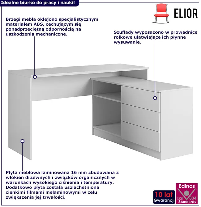 • Kliknij w link i sprawdź także inne biurka narożne białe dostępne w naszej ofercie.