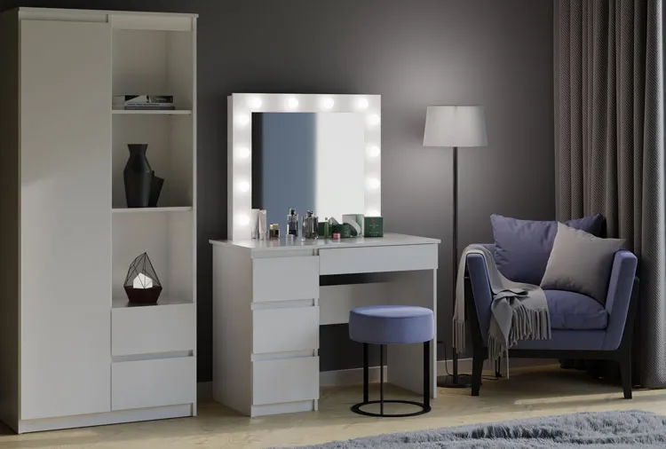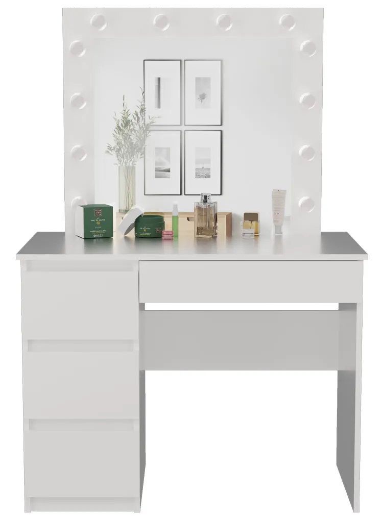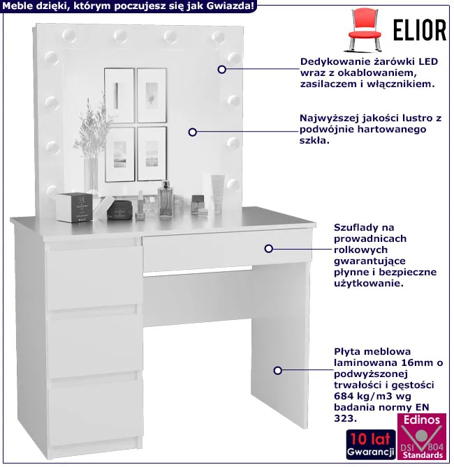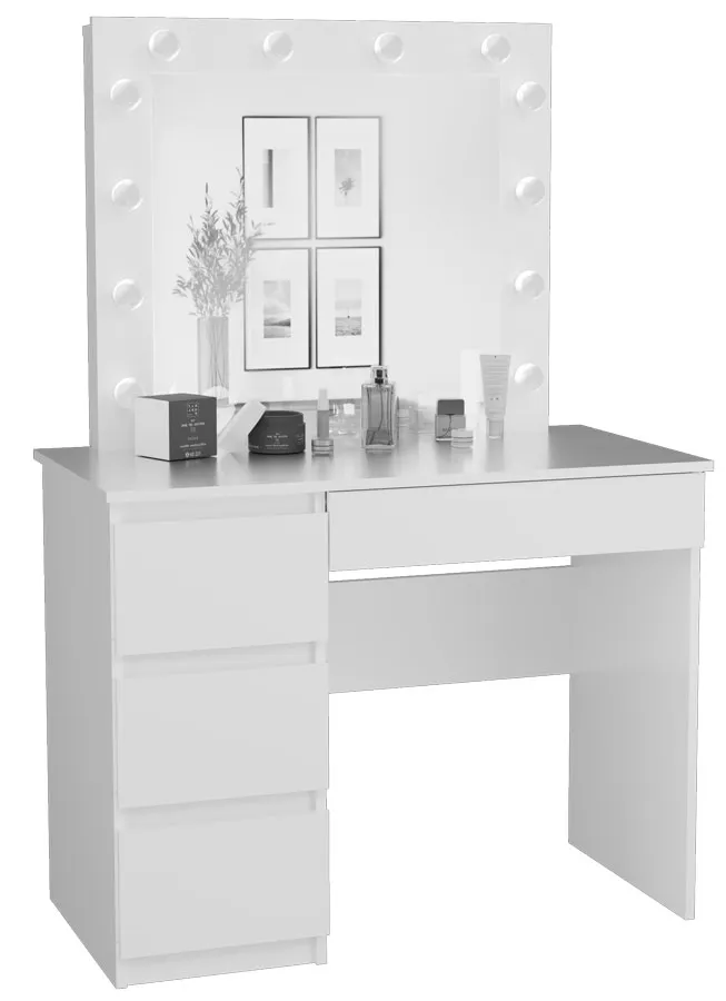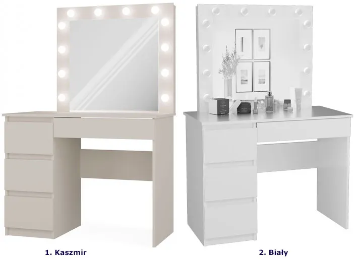 Dotyczy: Białe biurko toaletka z szufladami i lustrem scenicznym - Wenus 6X