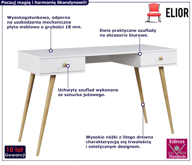 Dotyczy: Skandynawskie biurko z szufladami macchiato - Geza 13X