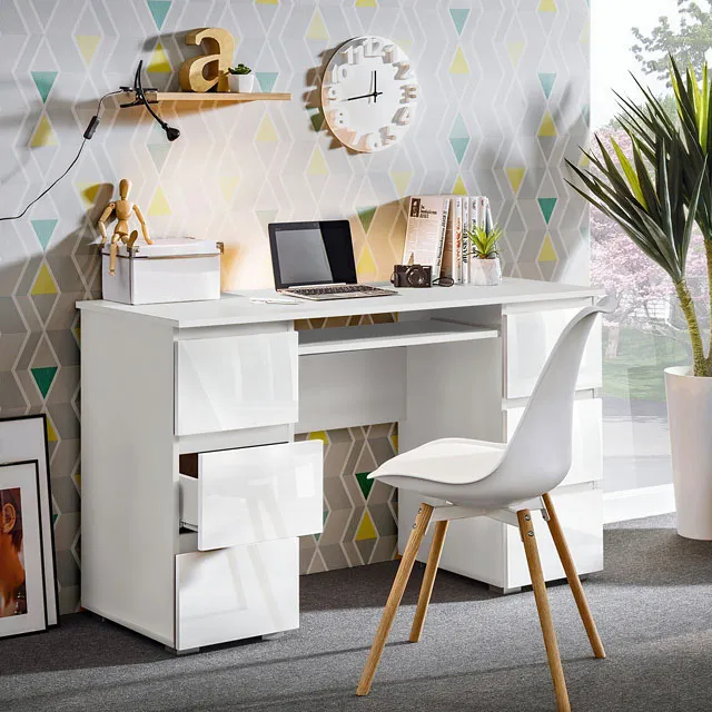 Białe biurko z błyszczącymi frontami szuflad prezentuje się całkiem ok chociaż ważniejsza jest dla mnie jakość wykonania i tutaj pewne zastrzeżenie z uwagi na rysę którą zauwayłam na jednej z szuflad