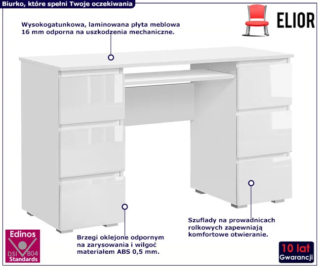Białe eleganckie biurko z sześcioma szufladami Odro 4X