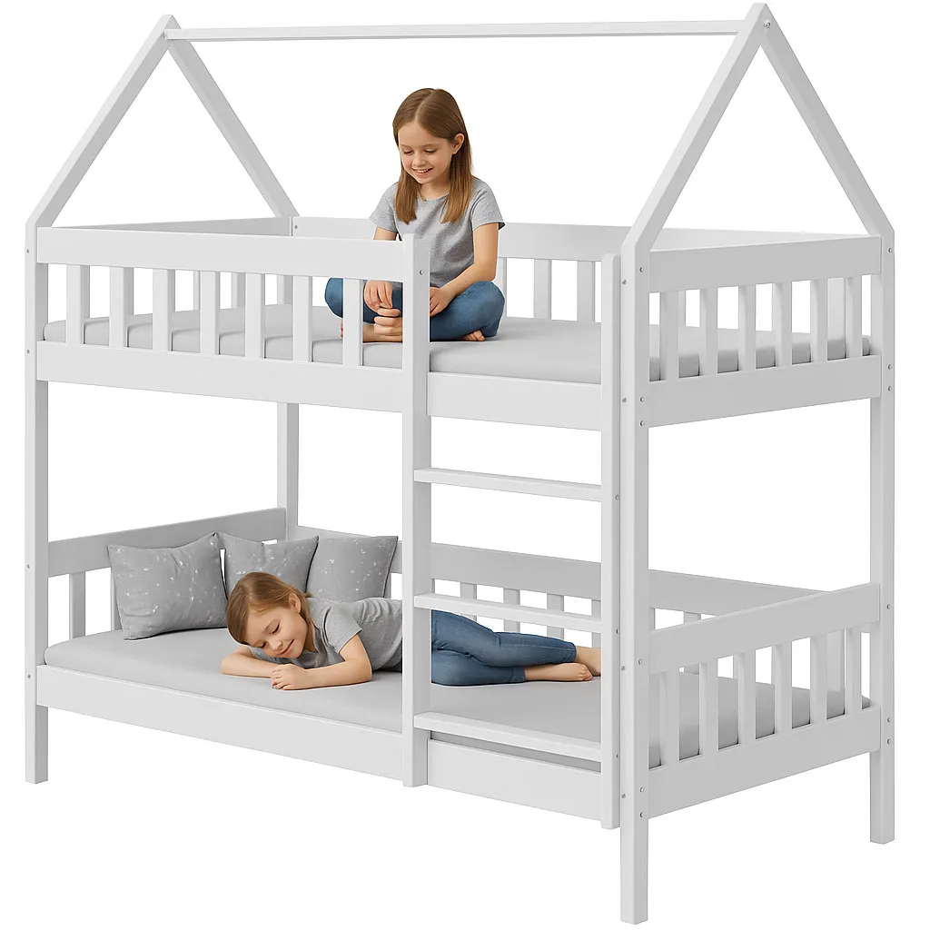 Łóżko Varcon 3X to mocna drewniana konstrukcja w kształcie prawdziwego domku. Dzieci kochają takie rozwiązania. Zachęć swoje maluchy do spania we własnym pokoju tym komfortowym i zaprojektowanym specjalnie dla nich meblem, który wytrzyma wszystkie dziecięce zabawy. W komplecie z łóżkiem otrzymasz dwa wygodne materace, tak by Twoje dzieci mogły od razu po złożeniu korzystać z nowego posłania. Mocna drewniana drabinka ułatwi wchodzenie na górę, a konstrukcja w kształcie dachu domku to świetne miejsce do zawieszenia kolorowych lampek czy dziecięcych zabawek. Bezpieczeństwo Twoich dzieci w trakcie spania gwarantuje też zestaw barierek, które zapobiegną spadnięciu maluchów na ziemię. Wybierz jakość, która da Ci zadowolenie z mebla i spokojny sen Twoich dzieci w jednym.