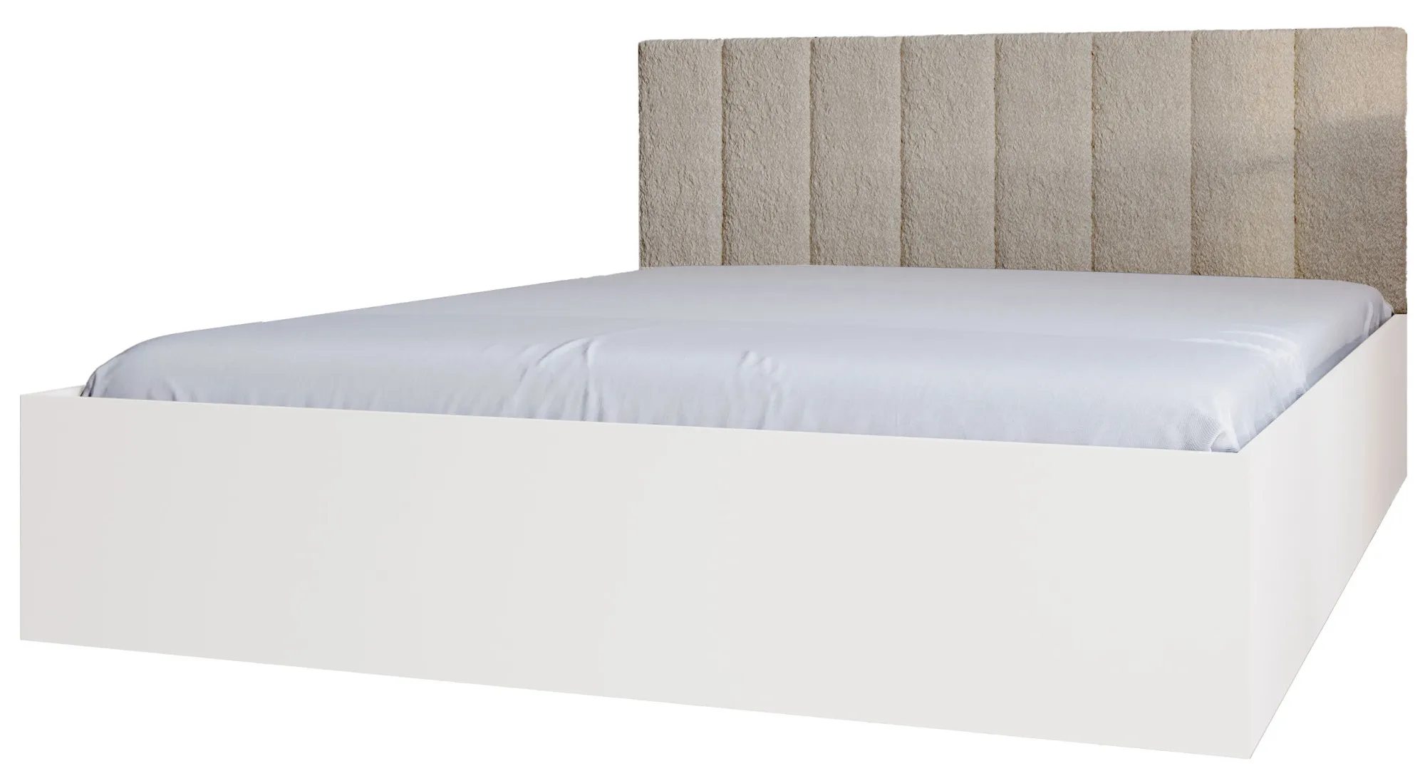 Białe łóżko z zagłówkiem baranek w kolorze beż Berigi 3X