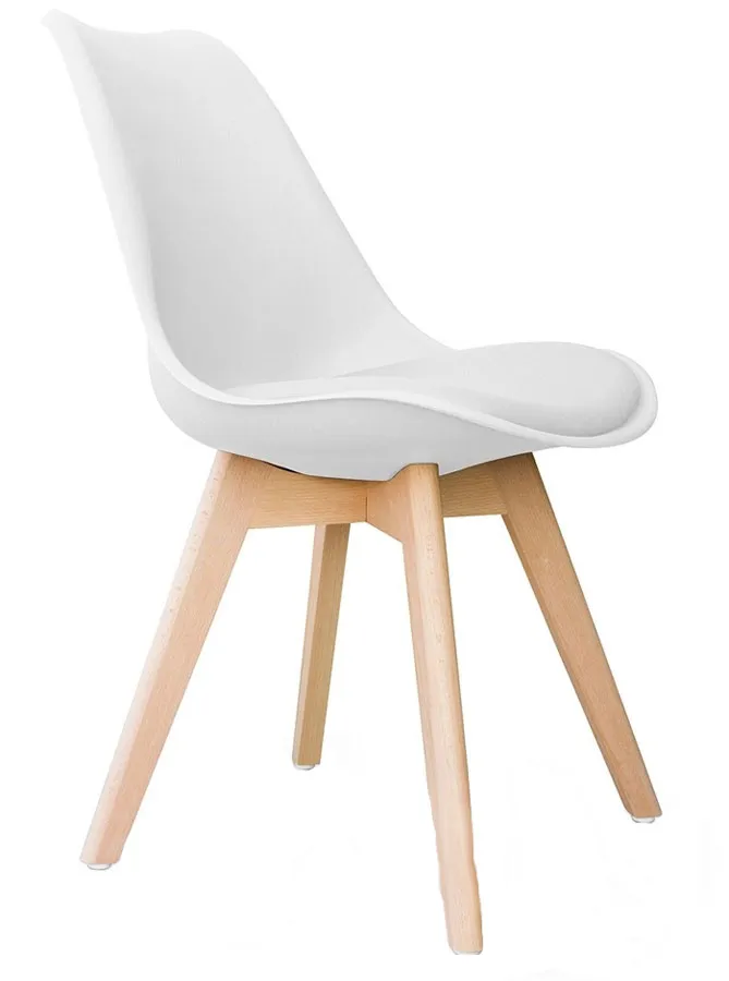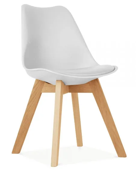 w moim przekonaniu bardzo wytworne krzesło, pomimo części z plastiku. Wszystko dzięki kolorom i materiałom, z których jest wykonane. Biały plastik na oparciu świetnie koresponduje z bukowymi nogami. Biała ekologiczna skóra na siedzisku jest z kolei dobrą para dla białego plastiku. Razem tworzą bardzo wygodne krzesło.