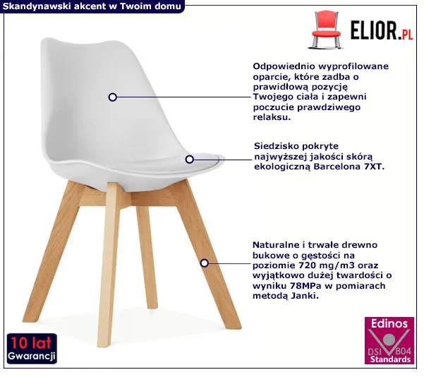 • Kolor: biały. Zobacz także inne białe krzesła do kuchni i jadalni w sklepie Edinos.pl.