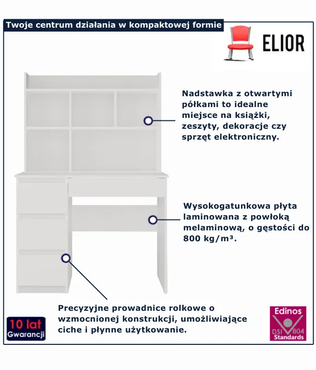 Dotyczy: Białe prawostrone biurko z nadstawką - Zawro