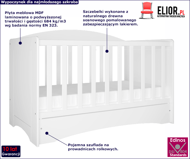 - Zaokrąglone krawędzie i ruchoma barierka zatroszczą o się o bezpieczny sen każdego małego użytkownika.