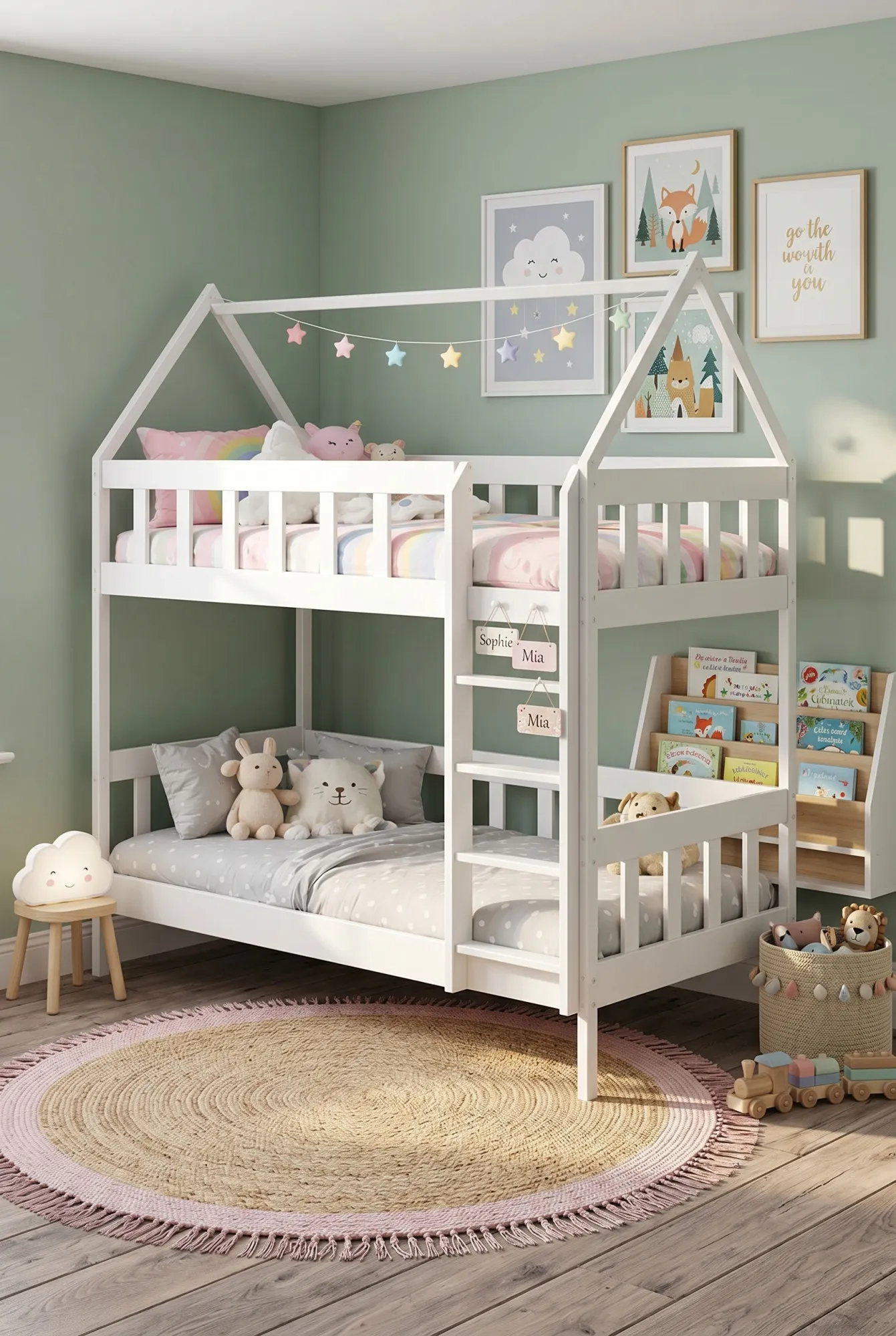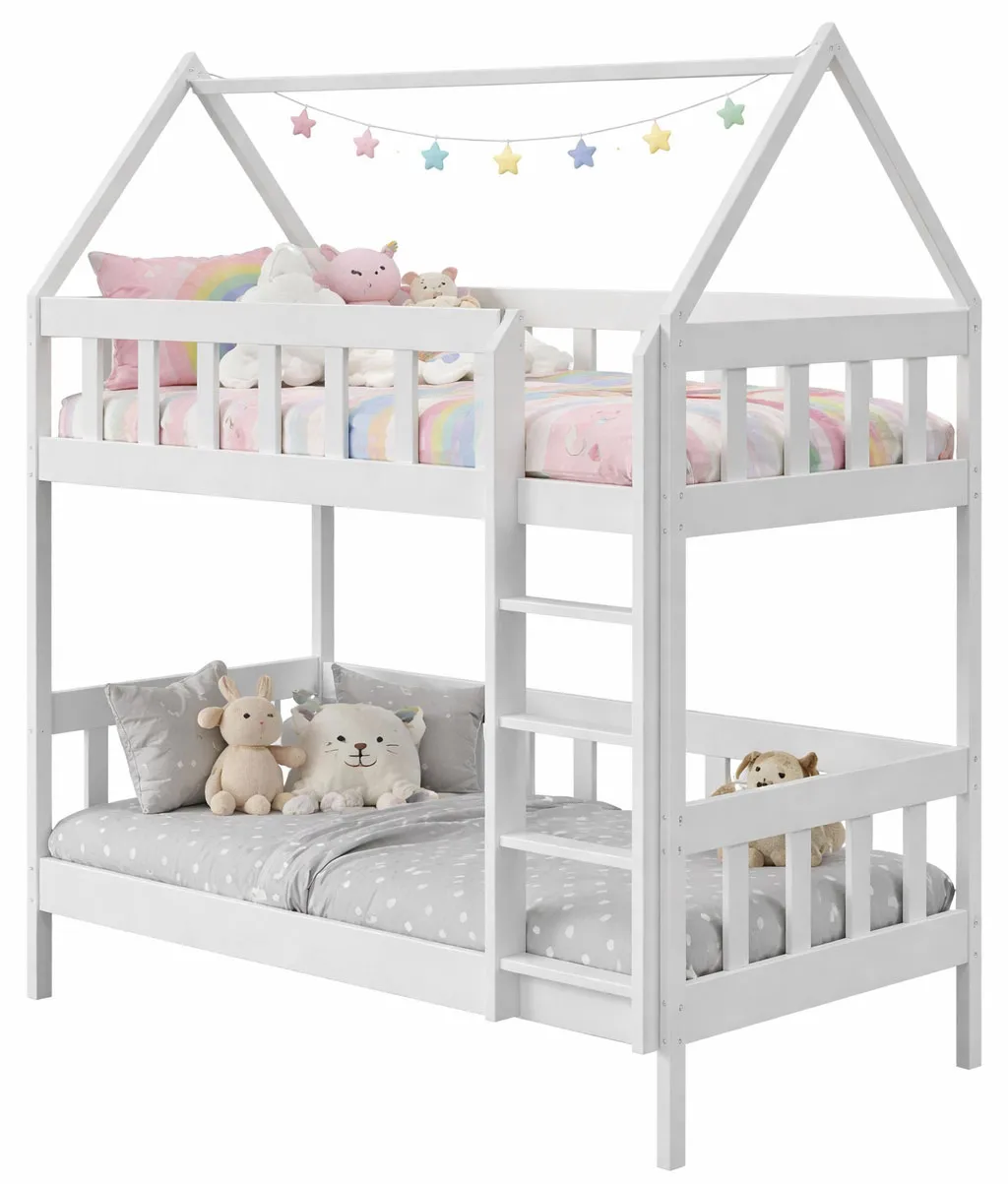 Dotyczy: Drewniane łóżko piętrowe domek do dziecięcej sypialni, sosna - Varcon 3X 190x90 cm