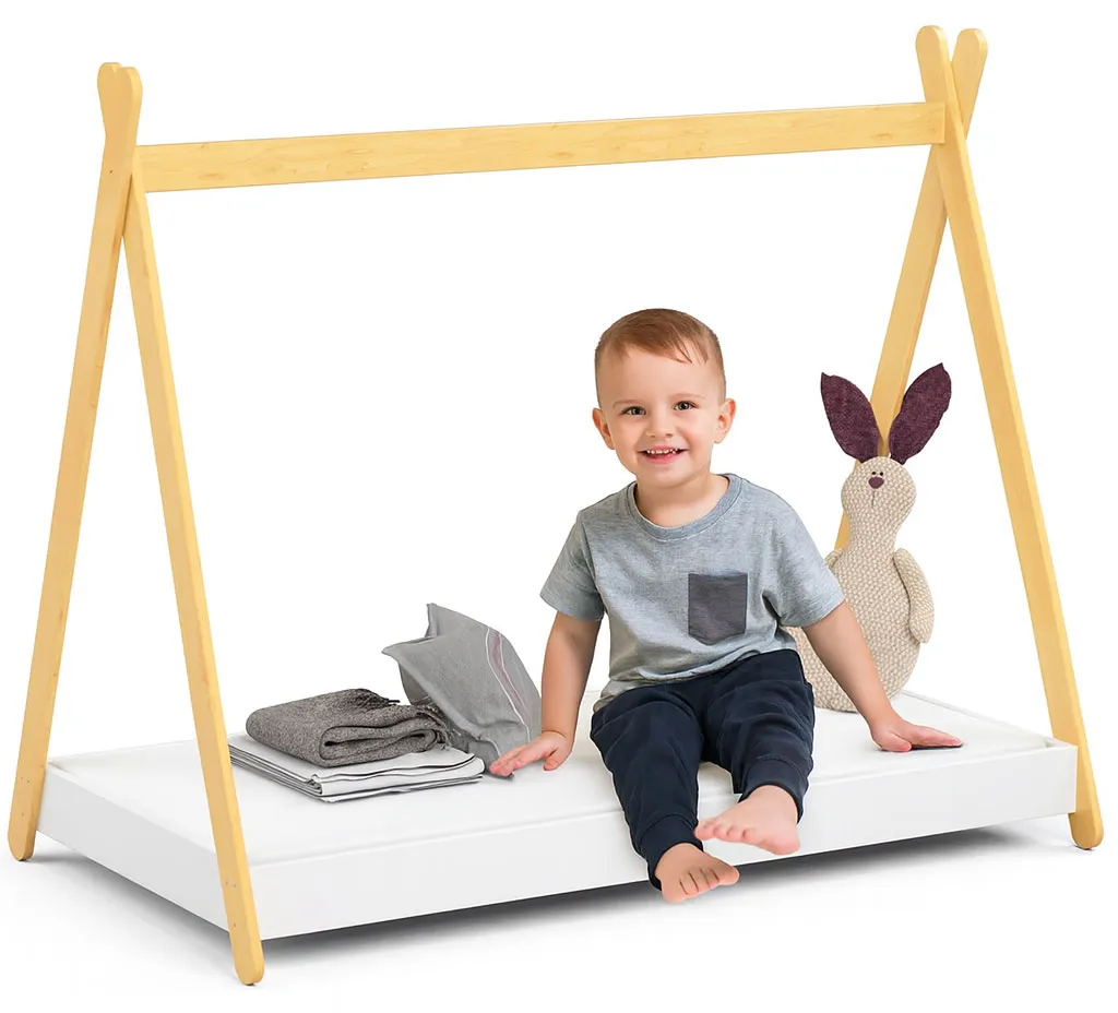 Nie ma na świecie dziecka, nielubiącego kolorowych światełek, które wieczorem nadają przyjemnego blasku w pokoju. Tak samo nie ma na świecie dziecka, które nie lubi bawić się w swoim łóżku, układając w nim do snu ulubione przytulanki. Wyobraź sobie, że mamy dla Ciebie idealną propozycję zarówno do zabawy, jak i odpoczynku- łóżko Welma 4X marki Edinos Premium. Ciekawa konstrukcja łóżka przypominająca kształtem namiot tipi, daje wiele możliwości aranżacji za pomocą kocy, czy kolorowego materiału, przenosząc naszego malucha w świat indiańskiej wioski. Jeżeli natomiast Wasza mała księżniczka marzy o królewskiej komnacie, wystarczy zawiesić kolorowe lampiony na baterie i jasne zasłony, które idealnie sprawdzą się w roli baldachimu. Niskie ułożenie materaca na stelażu to wygoda dla maluszków, które nie będą miały problemu z wejściem czy zejściem z łóżka. Piękna kolorystyka i oryginalny wzór idealnie wpasuje się zarówno do pokoju chłopca, jak i dziewczynki.