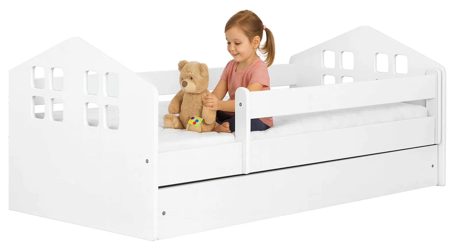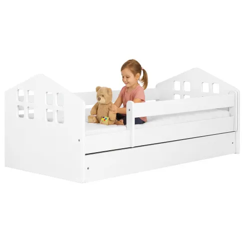 Łóżko Vizi zachwyca nie tylko wysokogatunkowymi materiałami, estetycznym wykończeniem, ale również imponującym designem. Mebel, a właściwie jego zagłówki z okienkami pobudzą wyobraźnię nie jednego malucha. Pamiętaj, że łóżko we wczesnym dzieciństwie nie służy tylko do spania, to także znakomite miejsce do zabawy. Biel konstrukcji, oryginalny wygląd sprawią, że łóżko przypadnie do gustu zarówno chłopcom, jak i dziewczynkom. Twojemu dziecku też się spodoba.