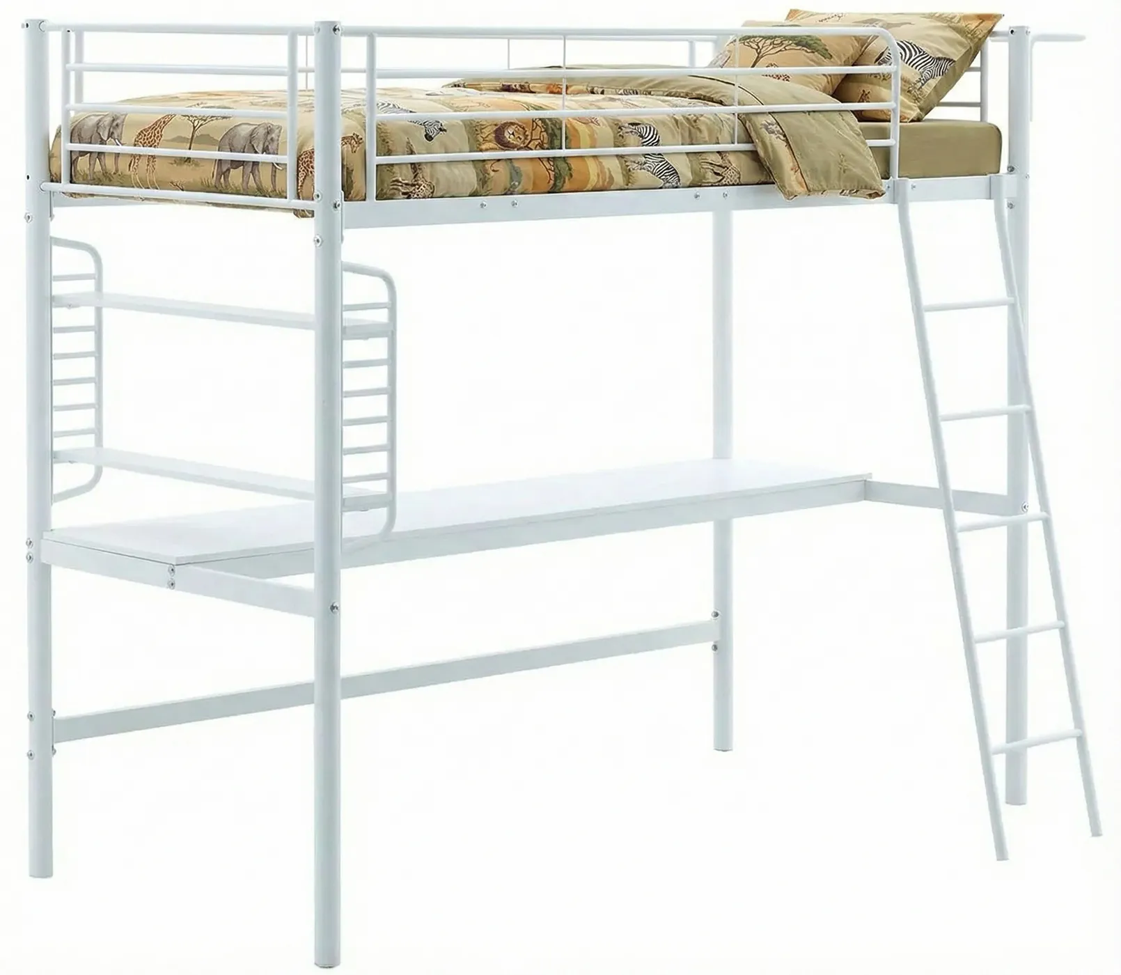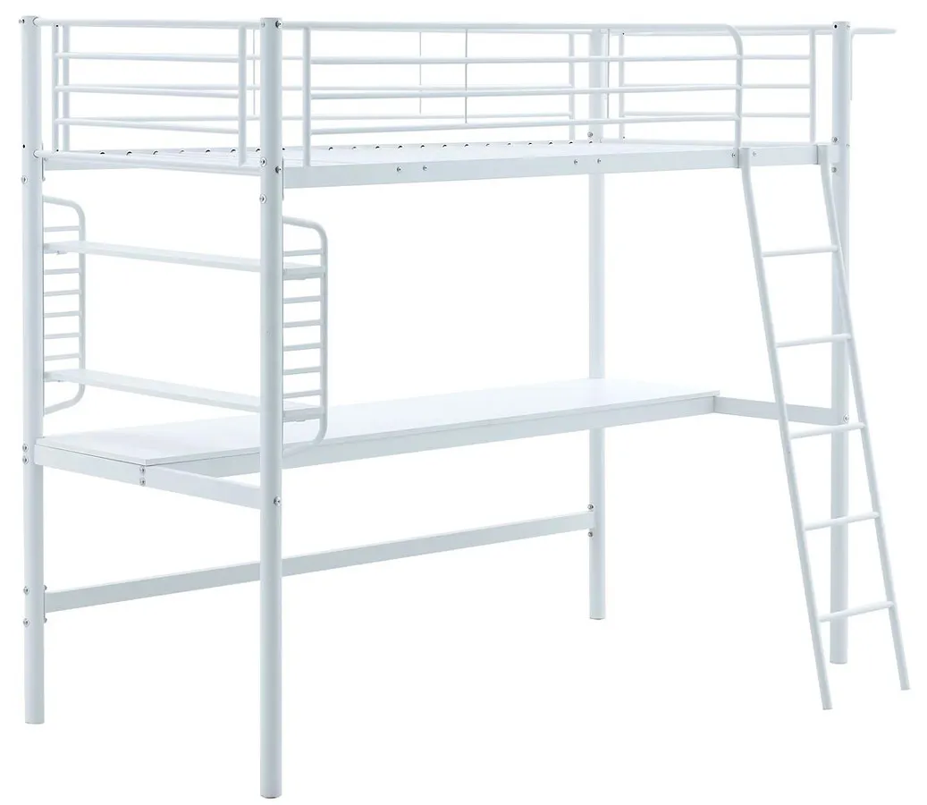 Białe łóżko pojedyncze z biurkiem i organizerem - Flip