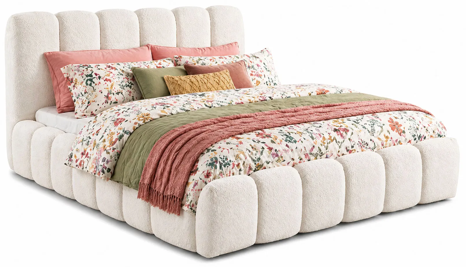 Dotyczy: Granatowe łóżko tapicerowane tkaniną boucle 5 rozmiarów - Nuviano