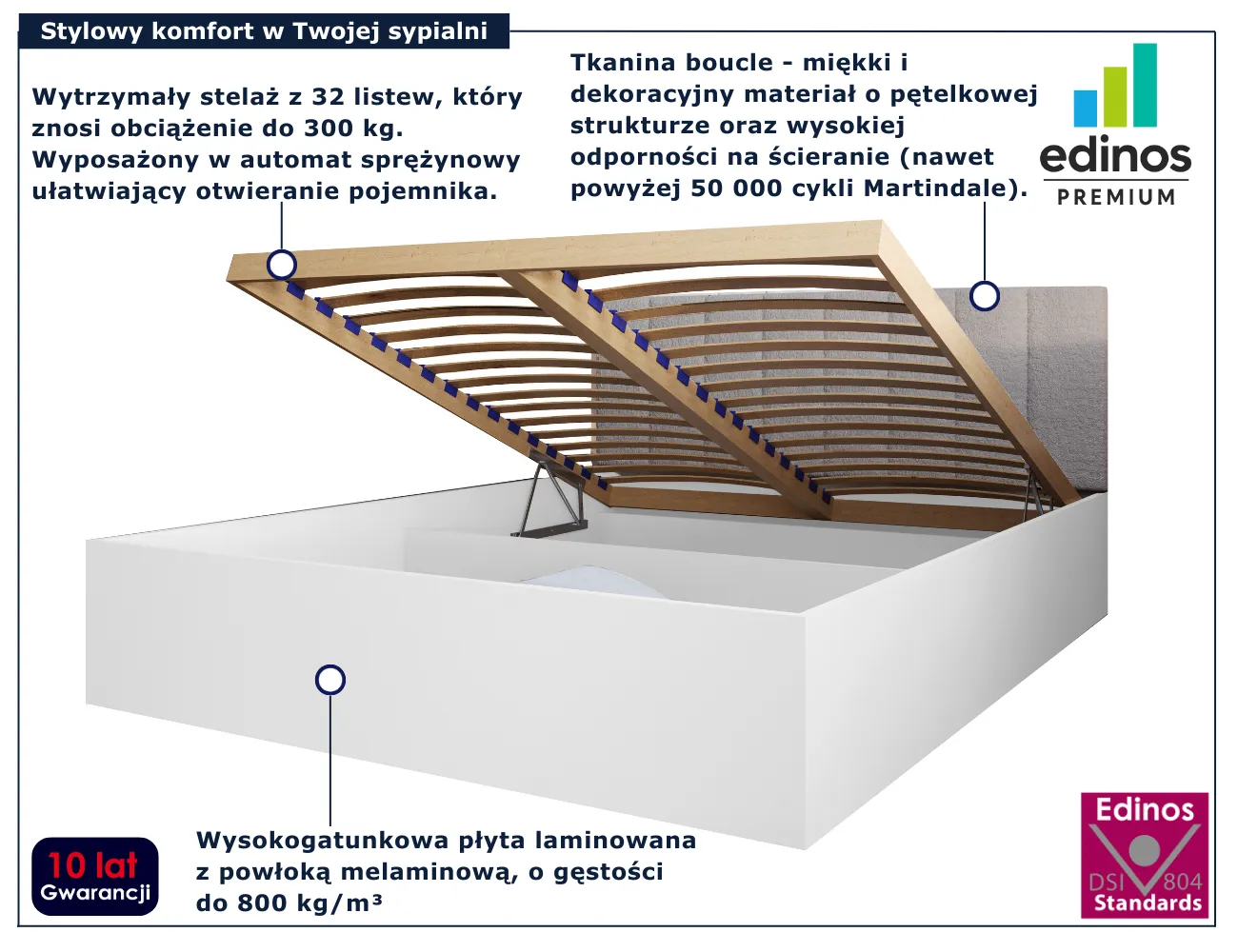 Dotyczy: Beżowe łóżko z zagłówkiem boucle i materacem 140x200 - Berigi 4X