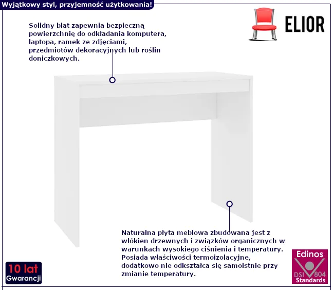 • Kolor: biały. W naszej ofercie posiadamy także inne biurka.