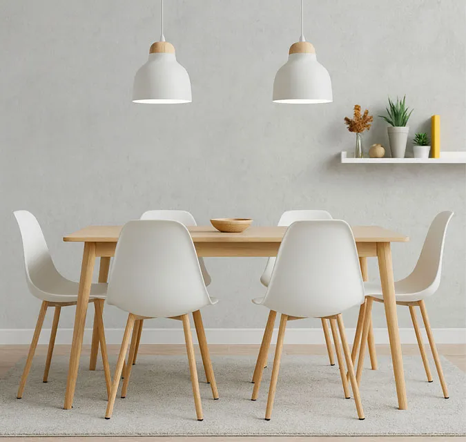 Nowoczesna jadalnia z wykorzystaniem białych krzeseł Exin 3X